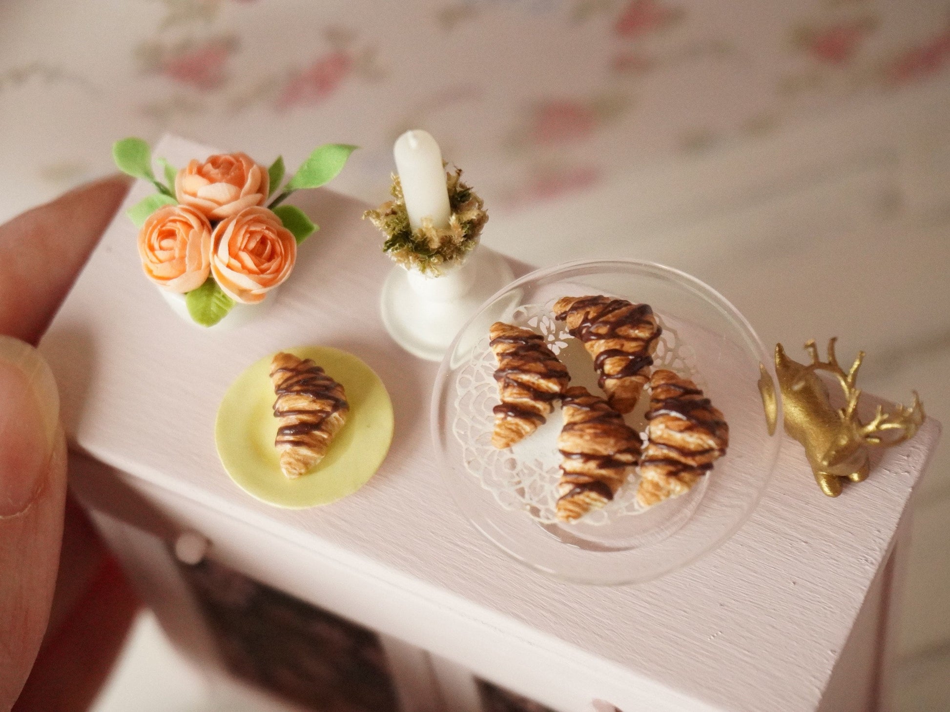 1:12 Scale Chocolate Croissant | Dollhouse Miniature Bakery Food | French Pastries