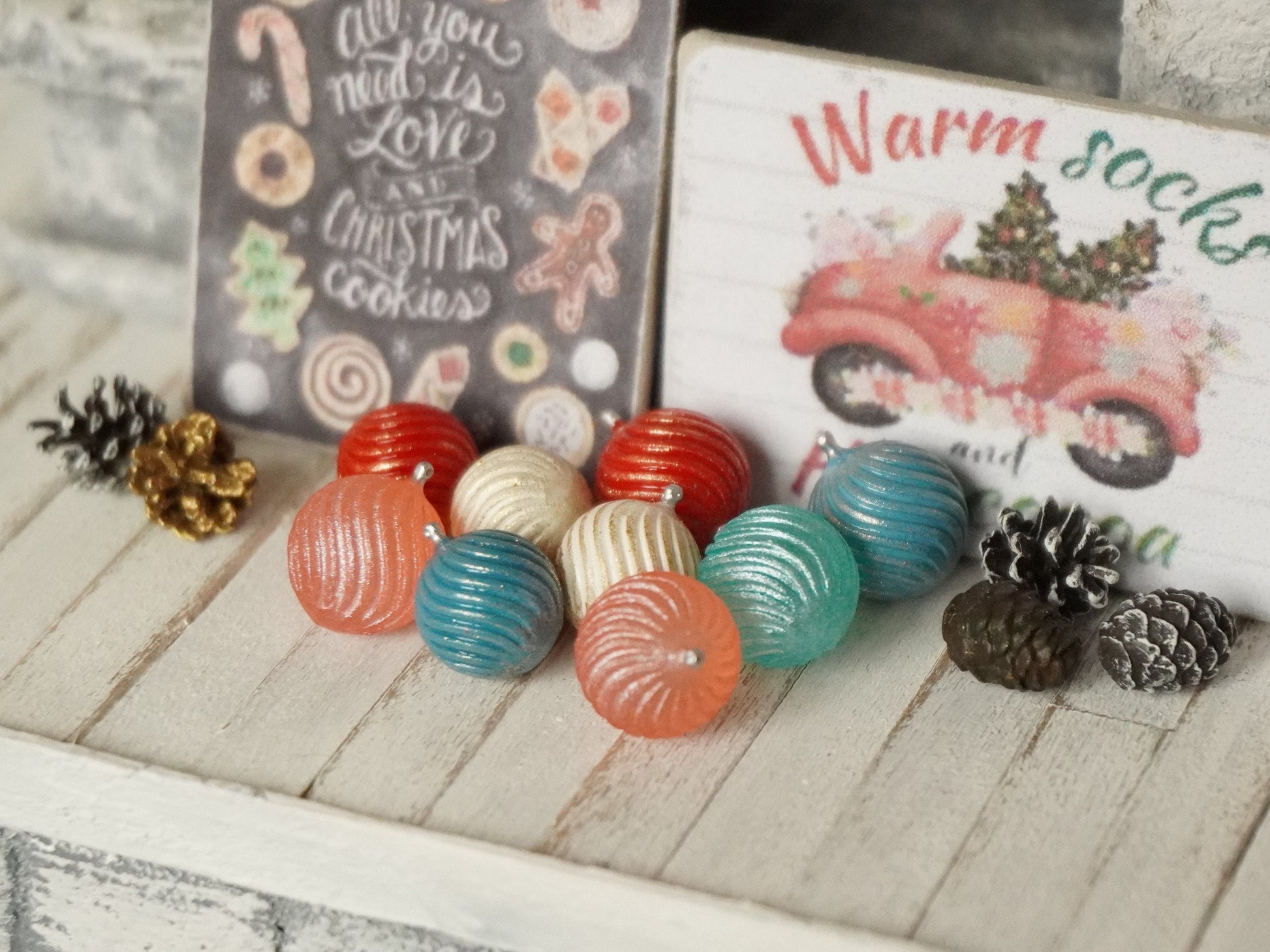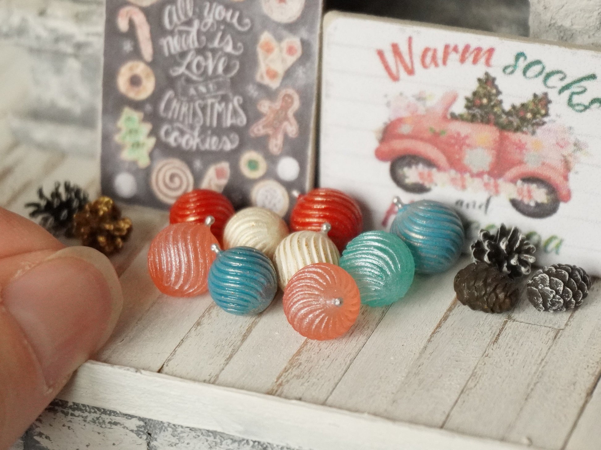 Dollhouse miniature Christmas ball ornaments, made in 1:12 scale.