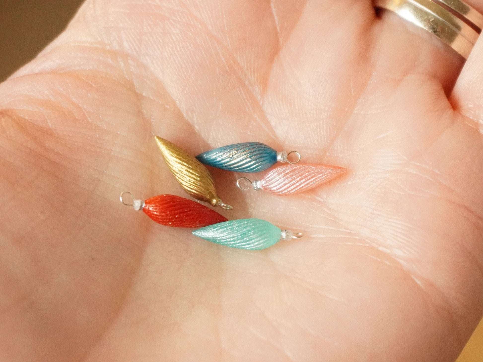 These are 3d printed in high quality resin and painted in different festive colors. They also have handmade attached hooks.