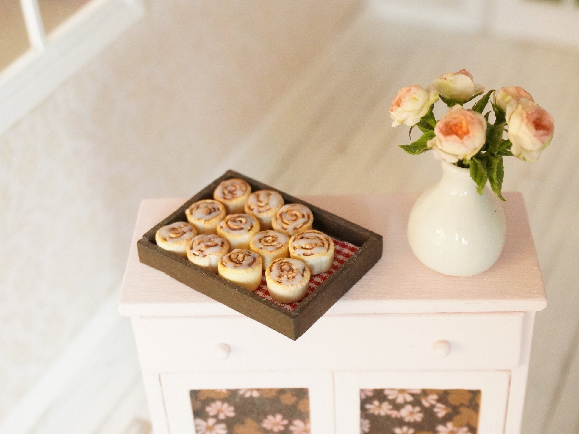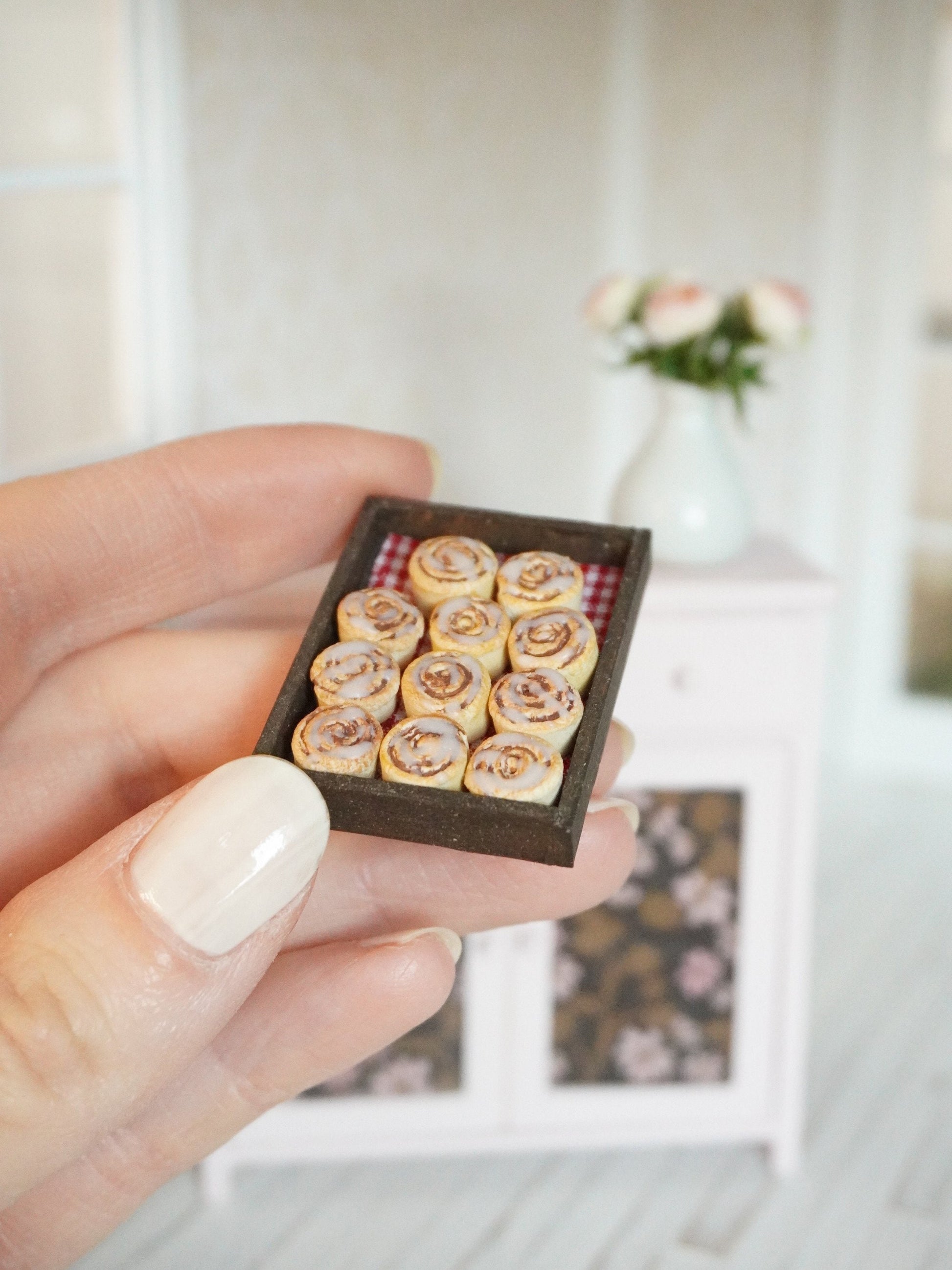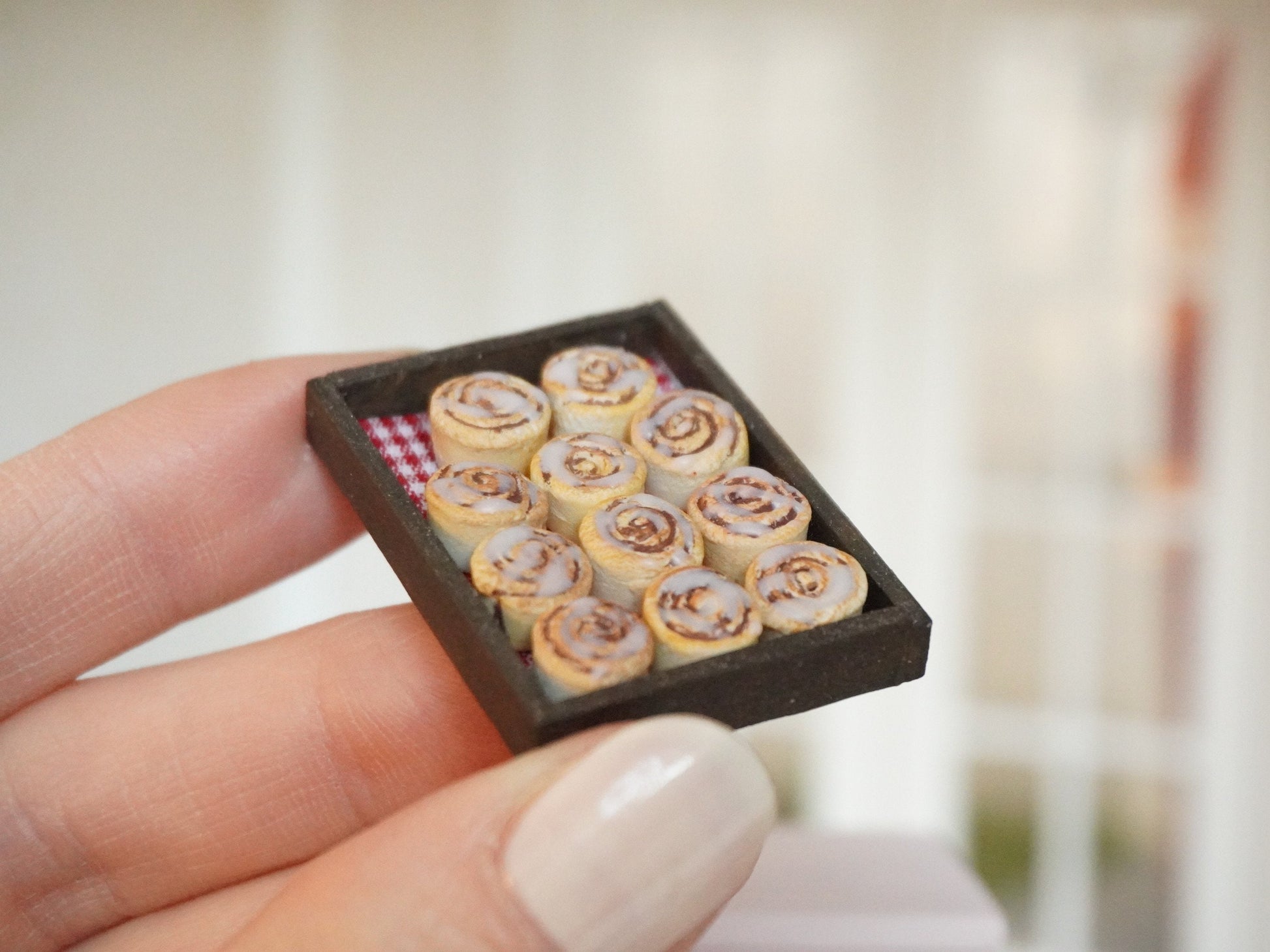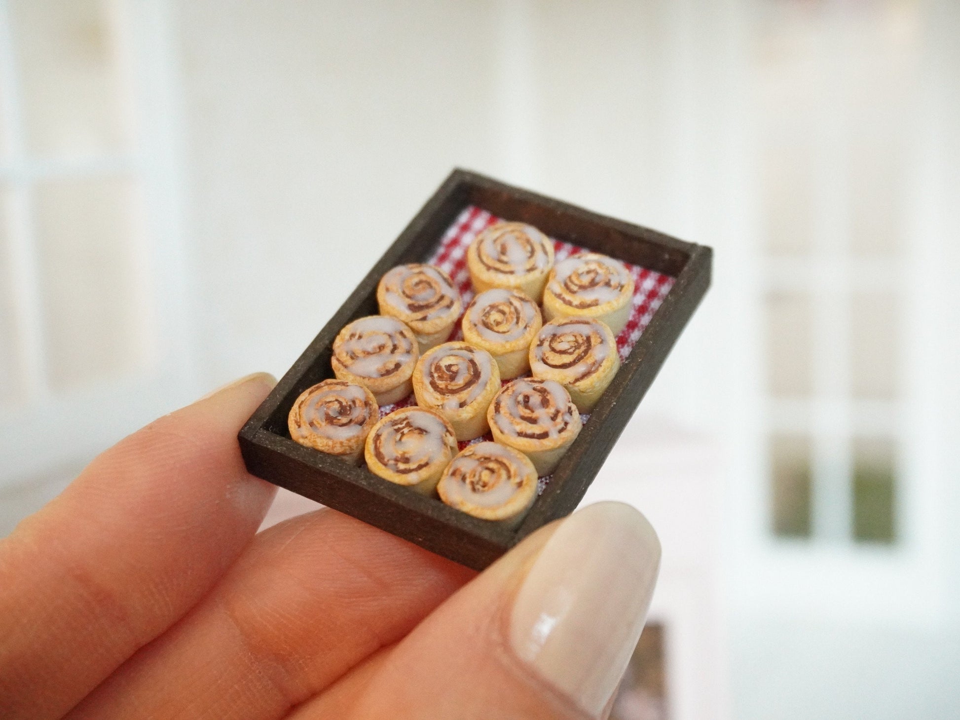Miniature cinnamon rolls handmade in 1:12 scale.