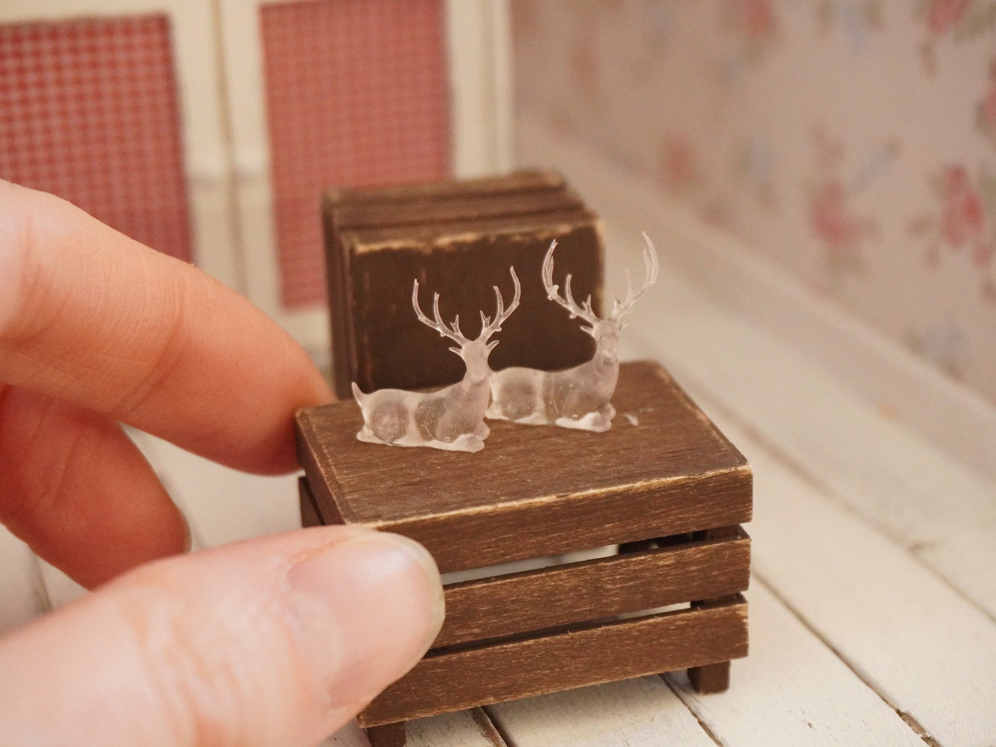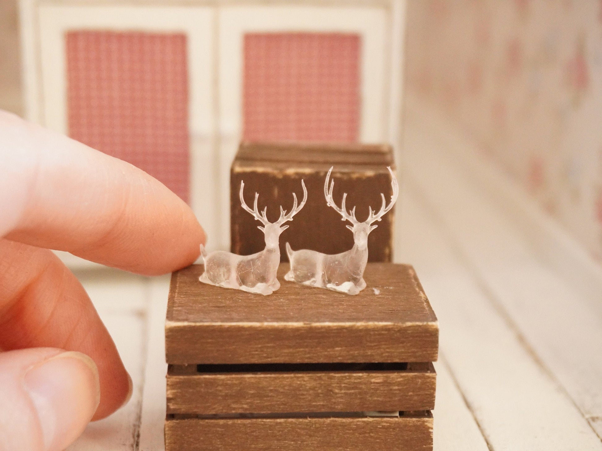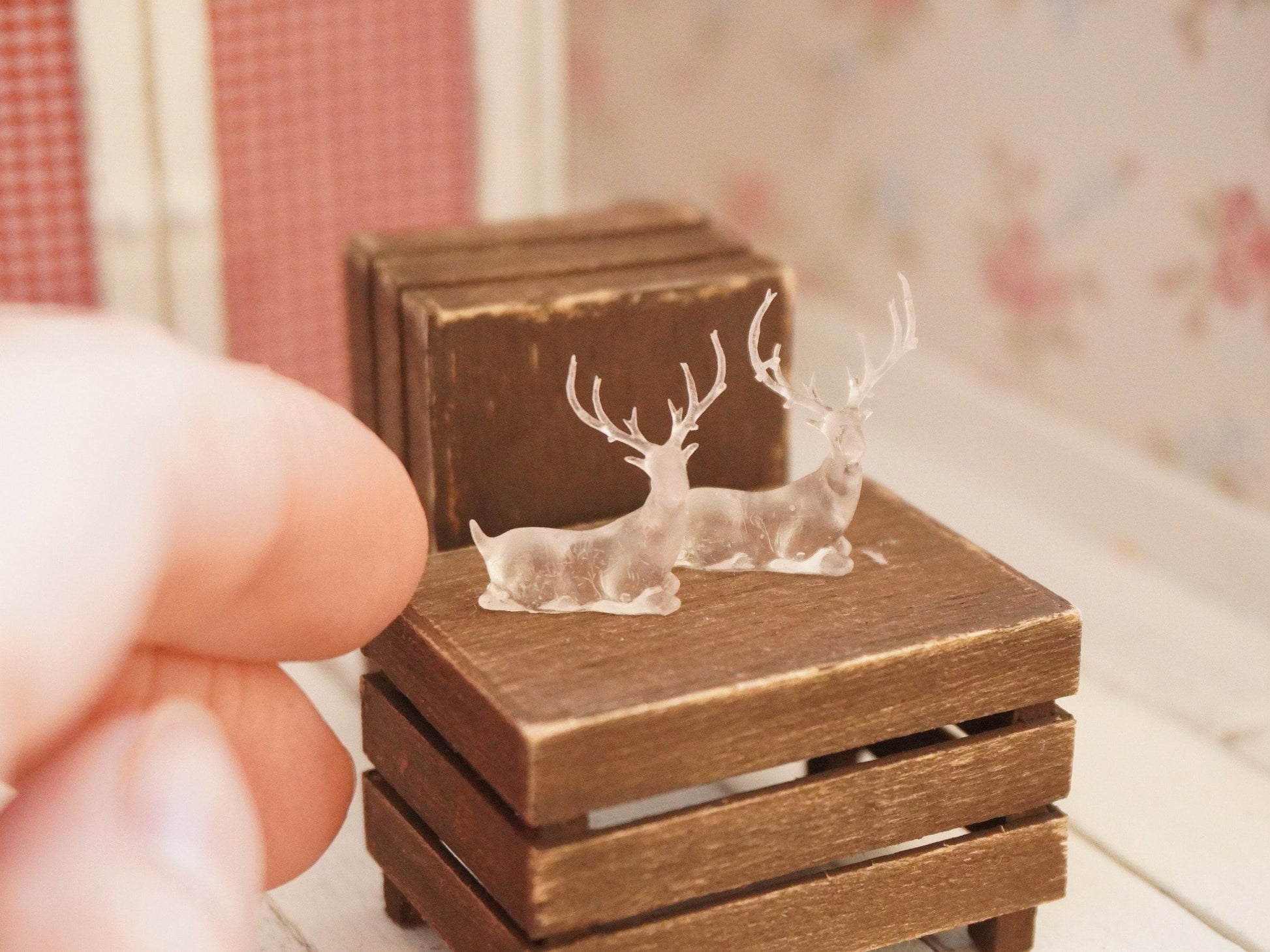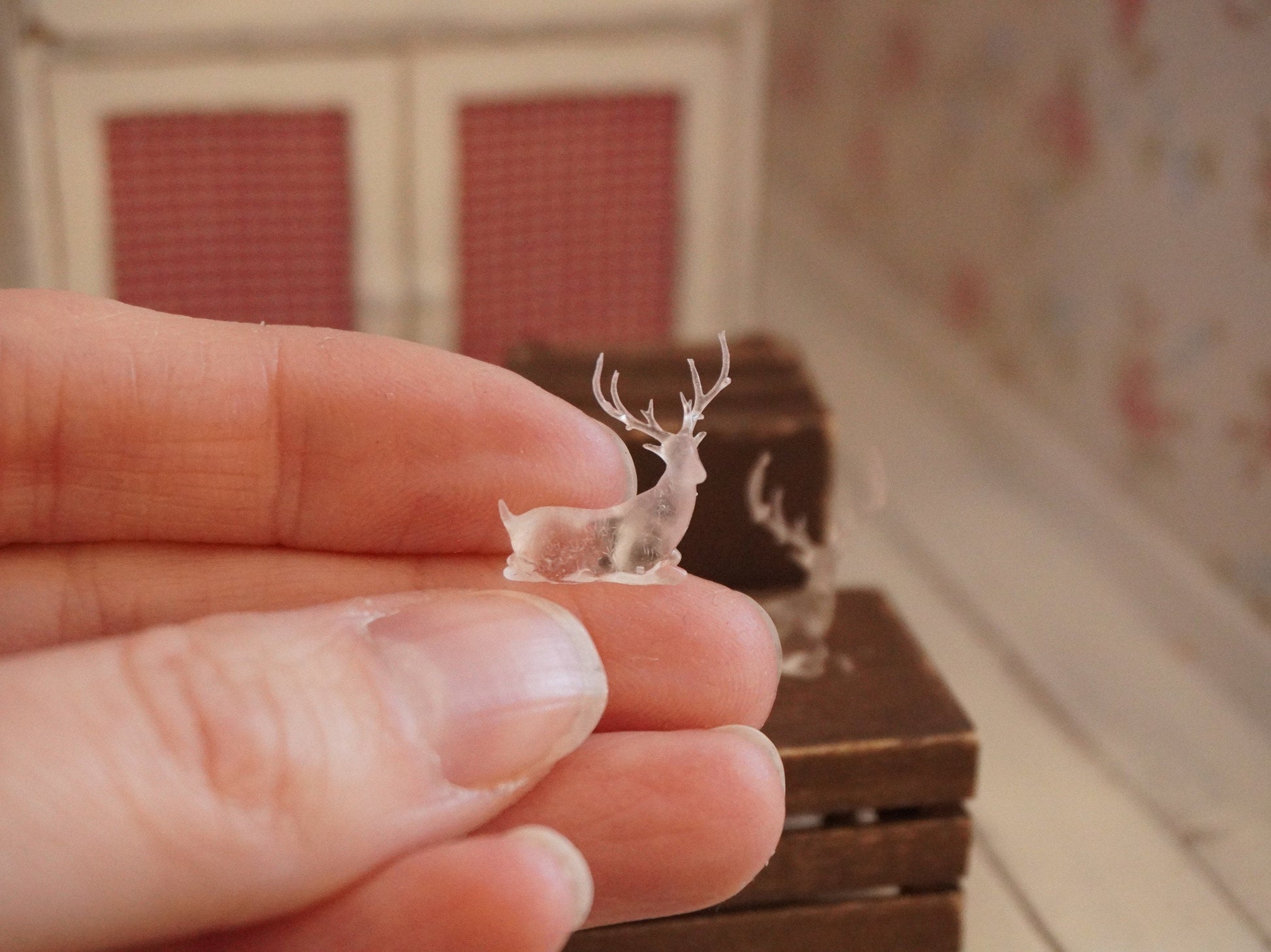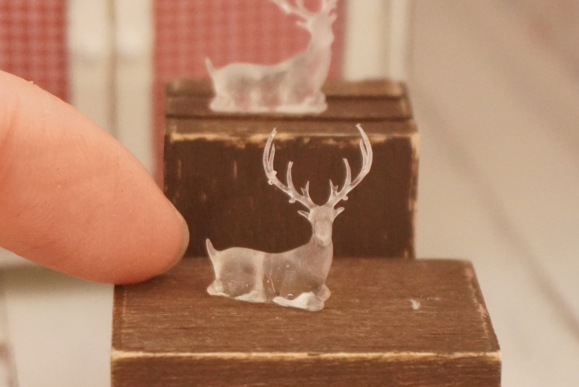 1:12 scale decorative deer figurine, 3d printed in transparent resin for crystal-like style.