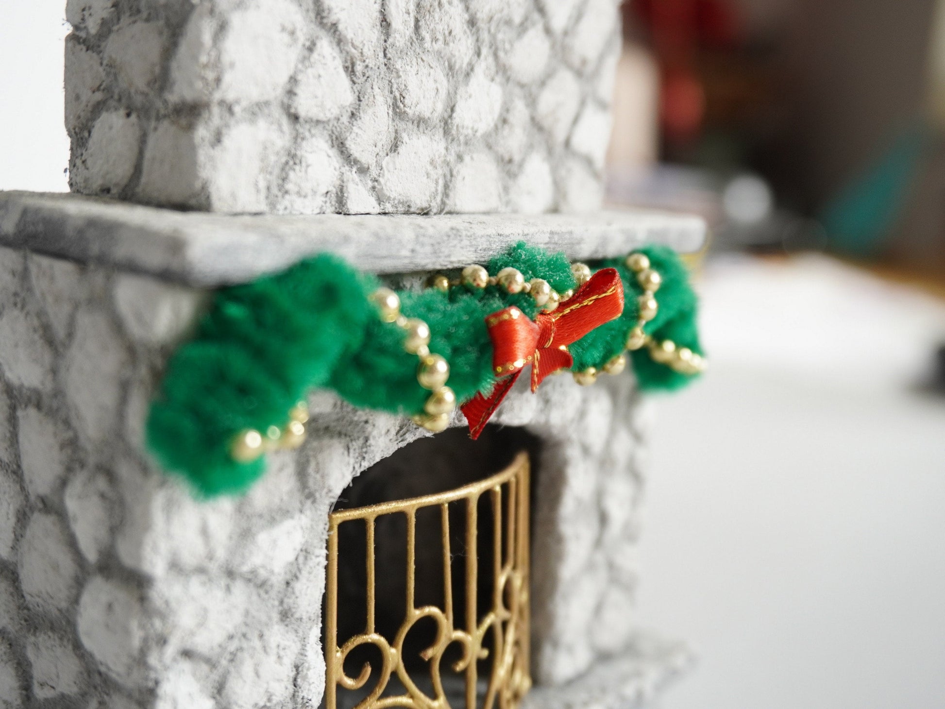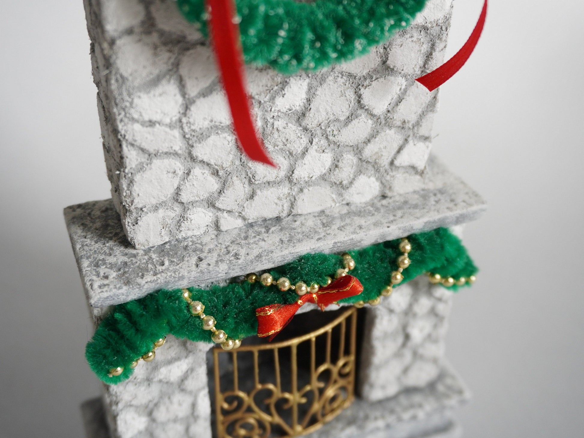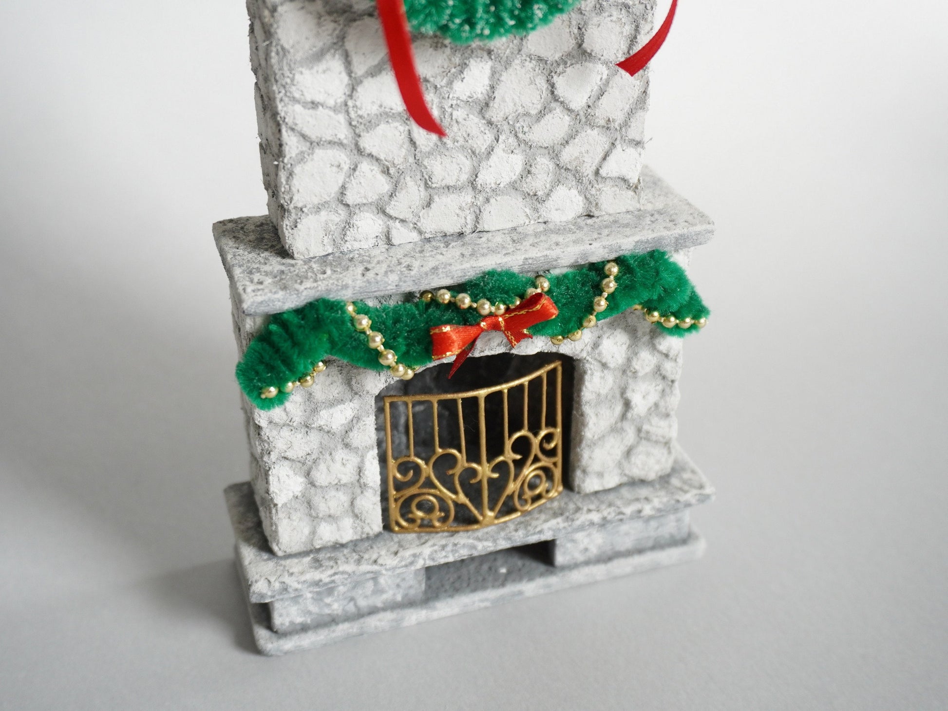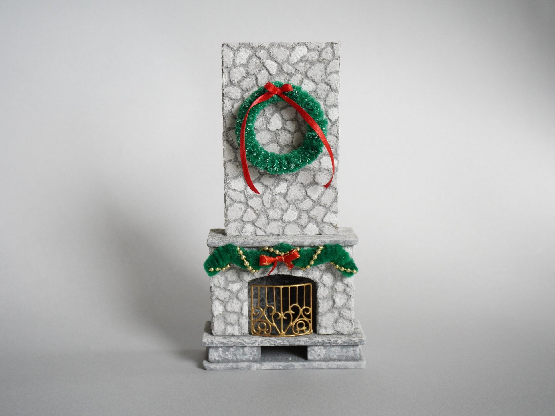 This carefully crafted and unique fireplace will be essential item for your miniature Christmas.