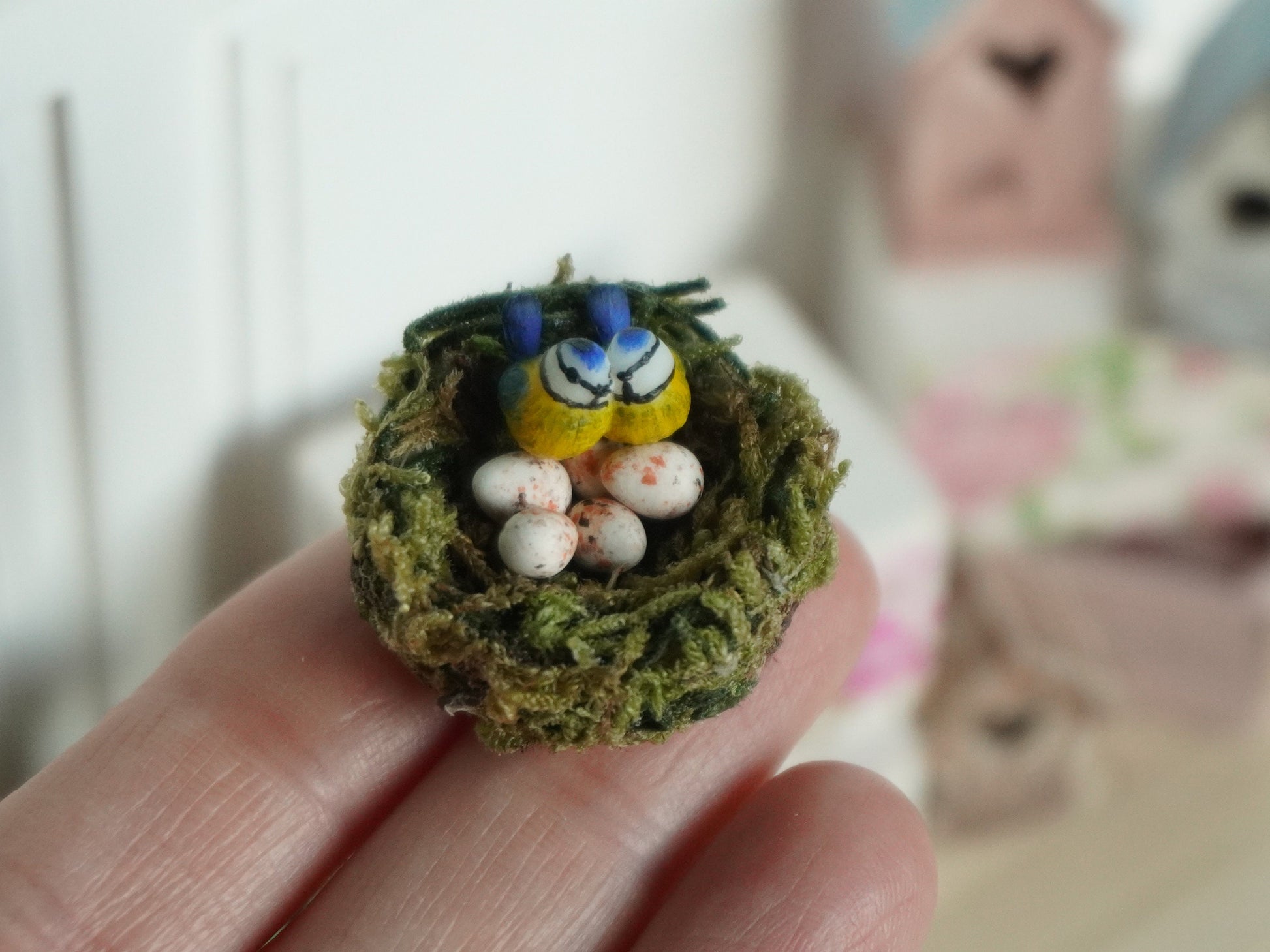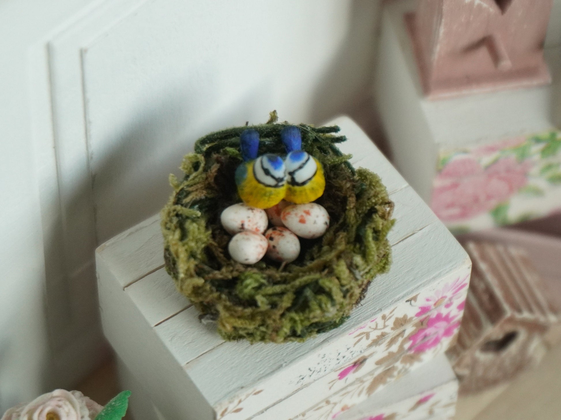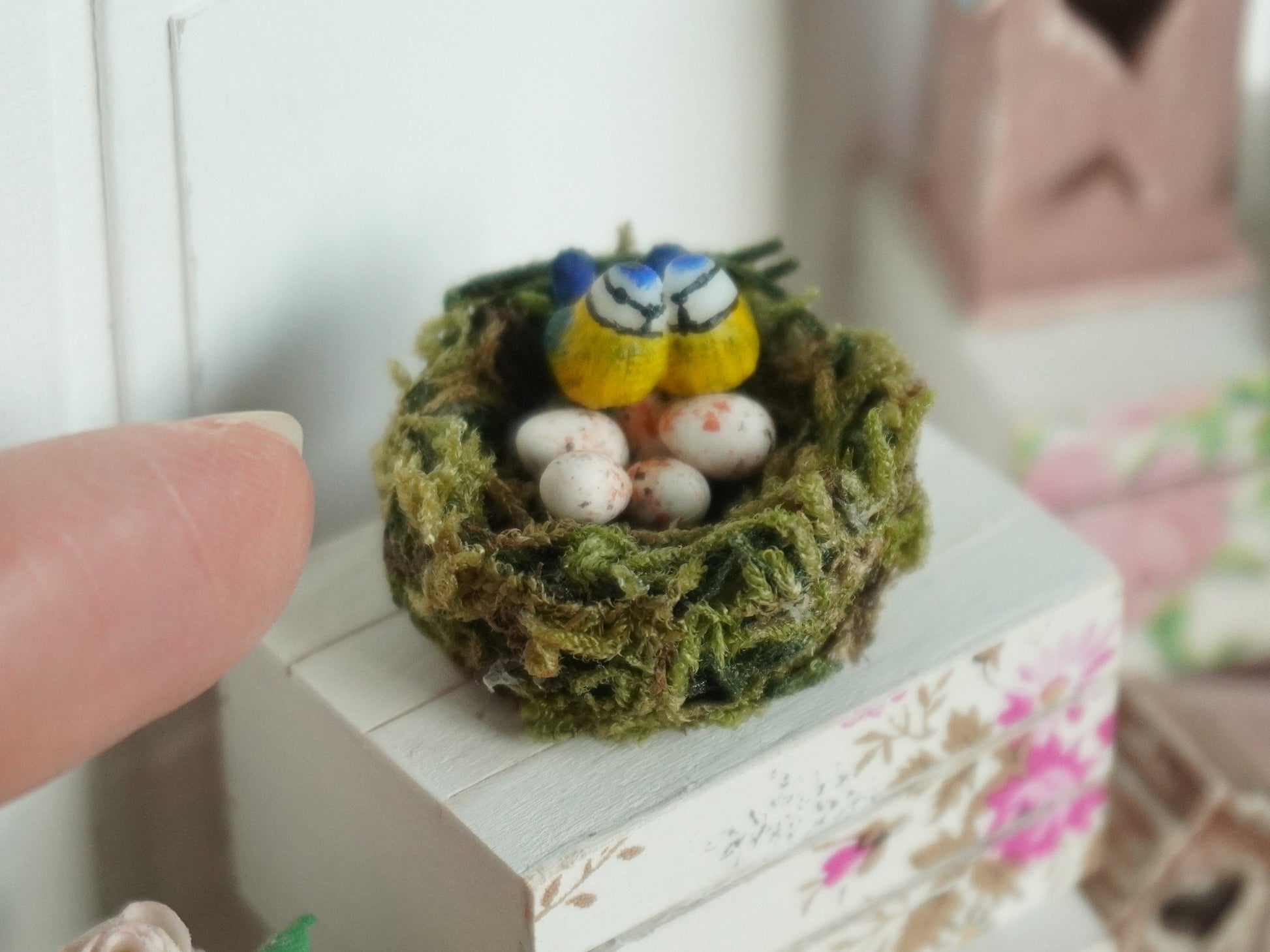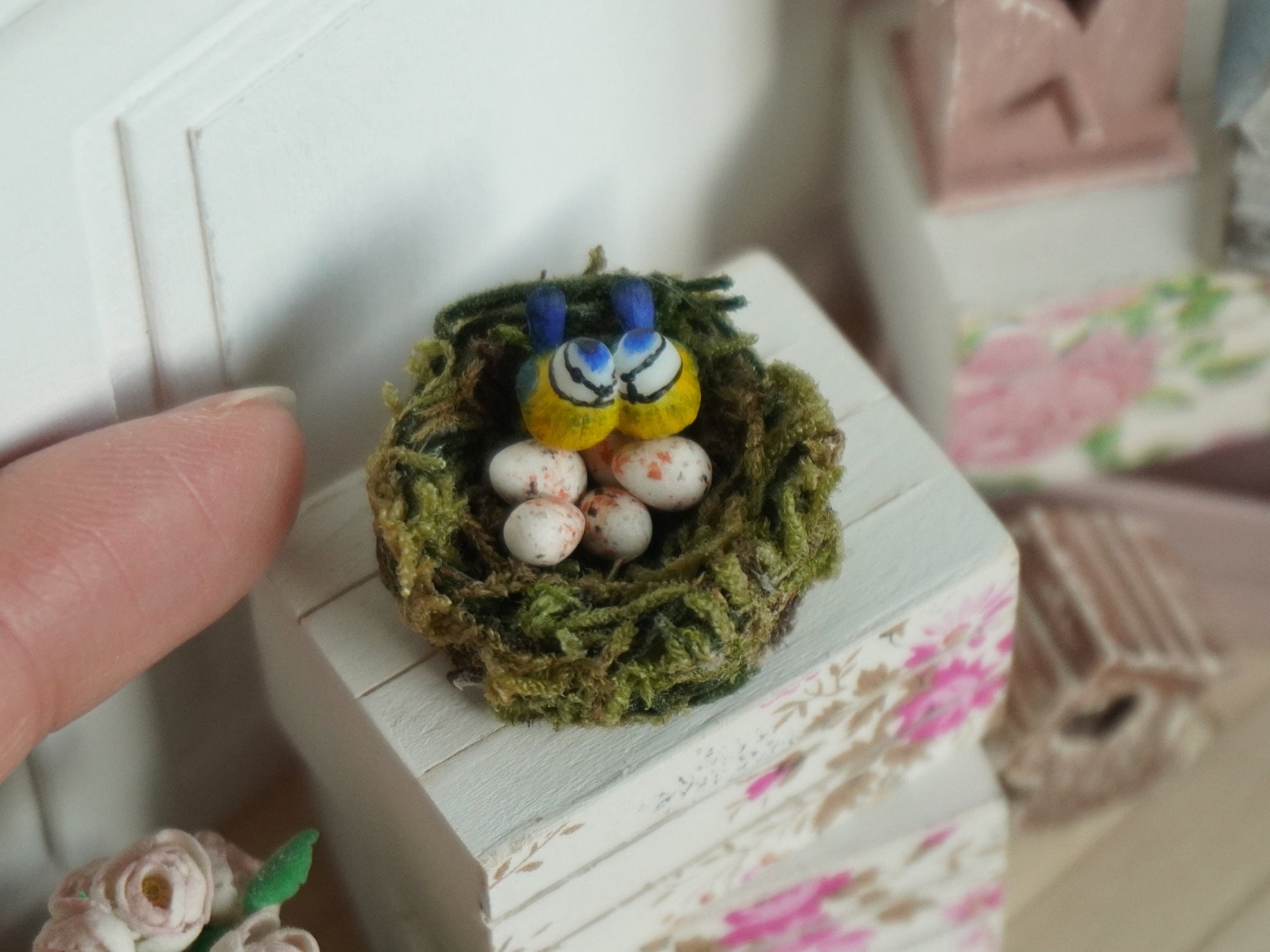 1:12 Scale Miniature Love Birds in Nest | Dollhouse Miniature Accessories | Miniature Garden