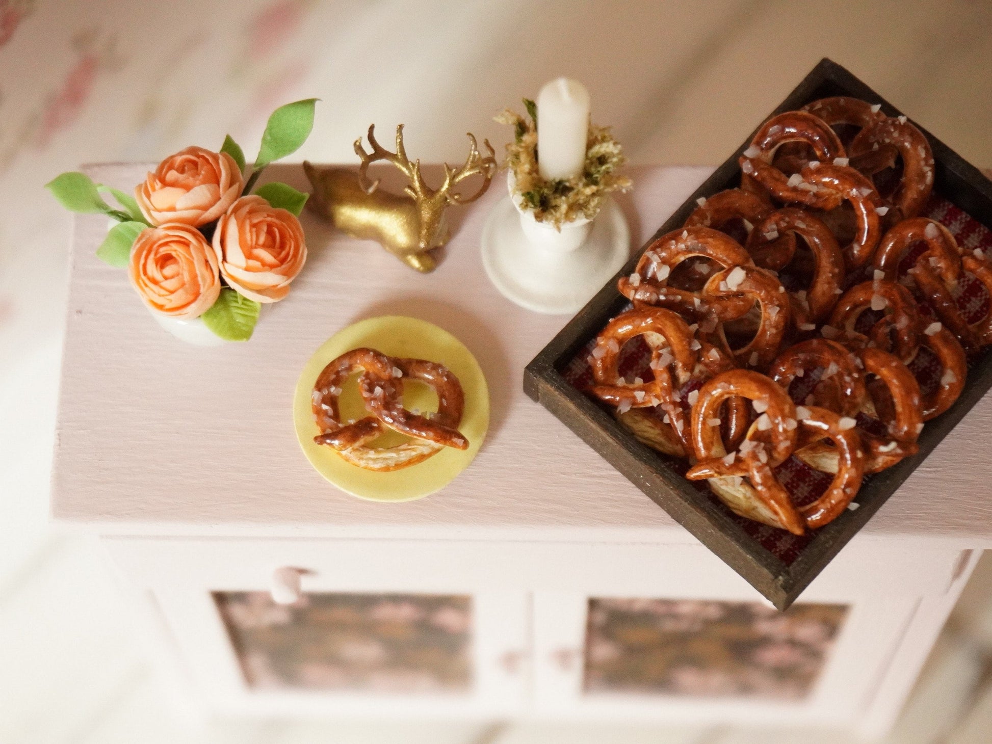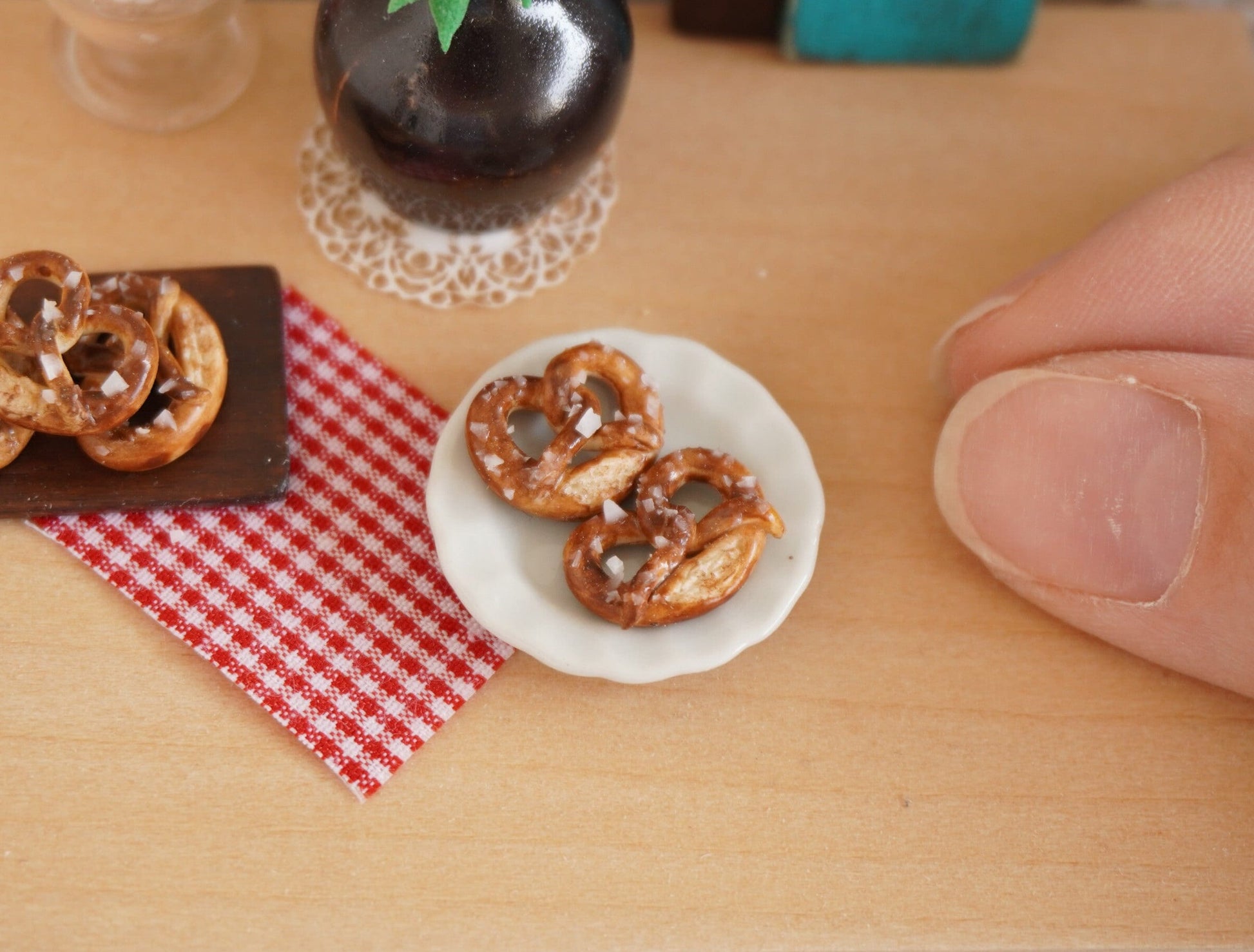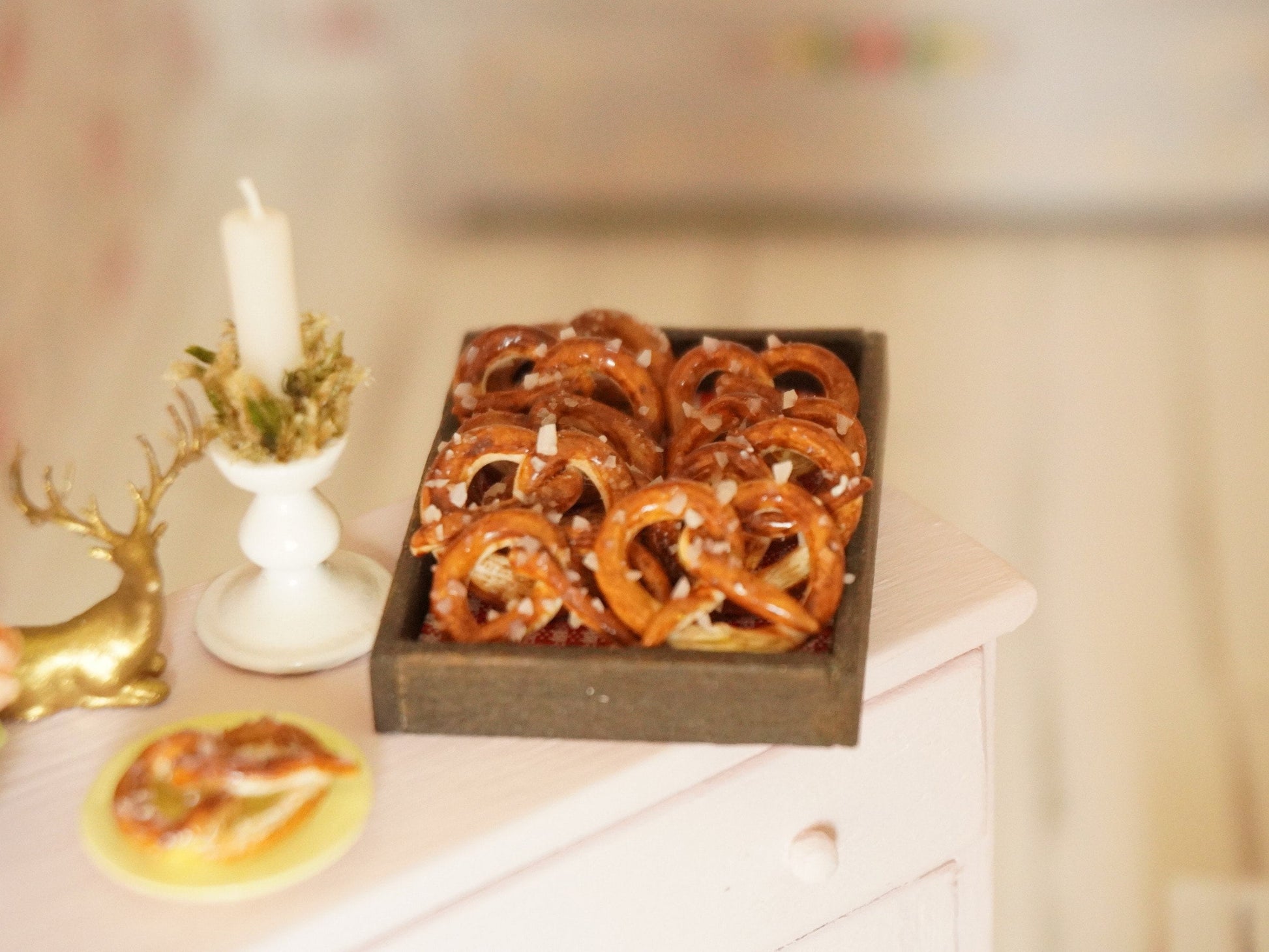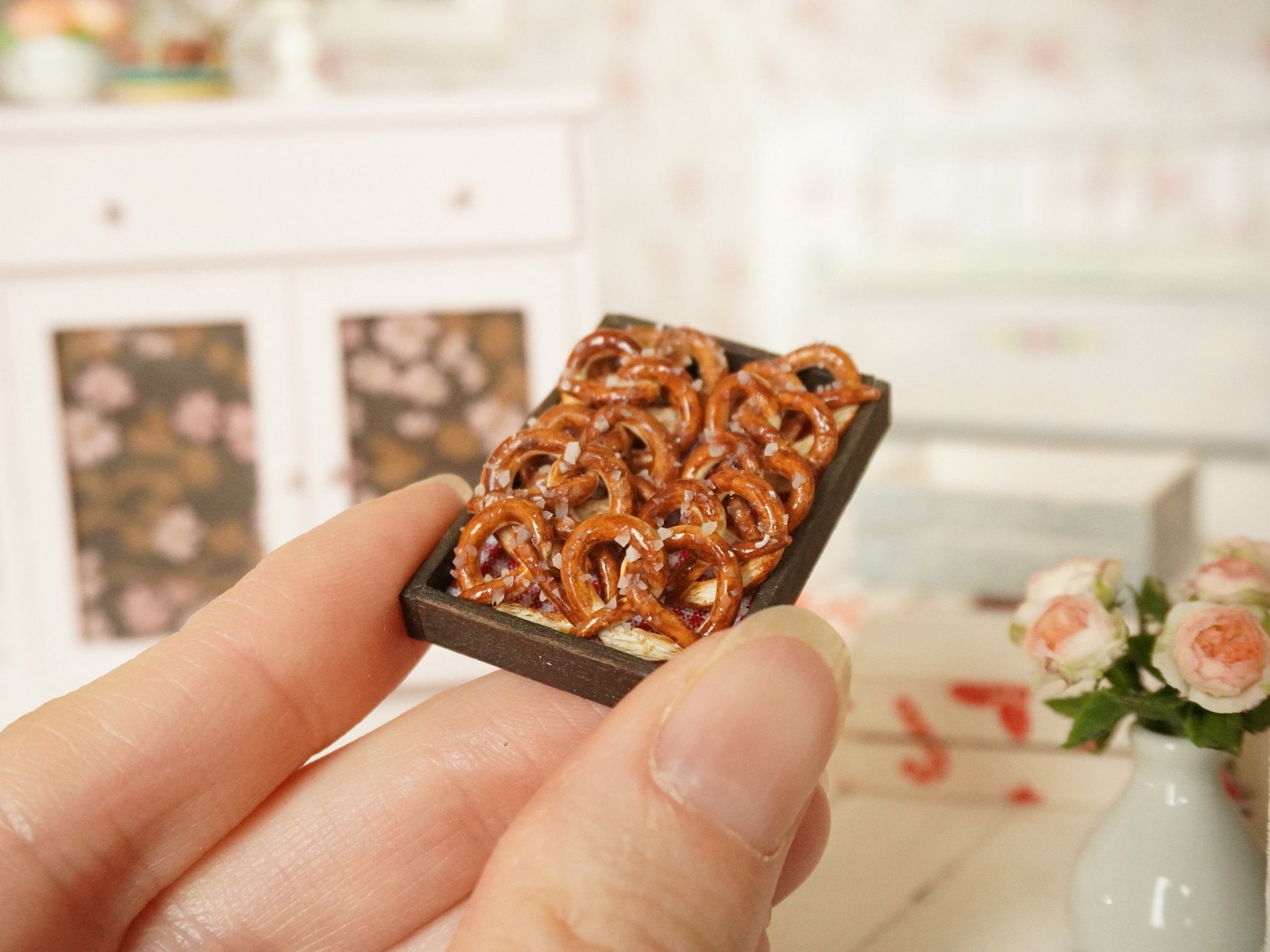 Miniature pretzel handmade in 1:12 scale.