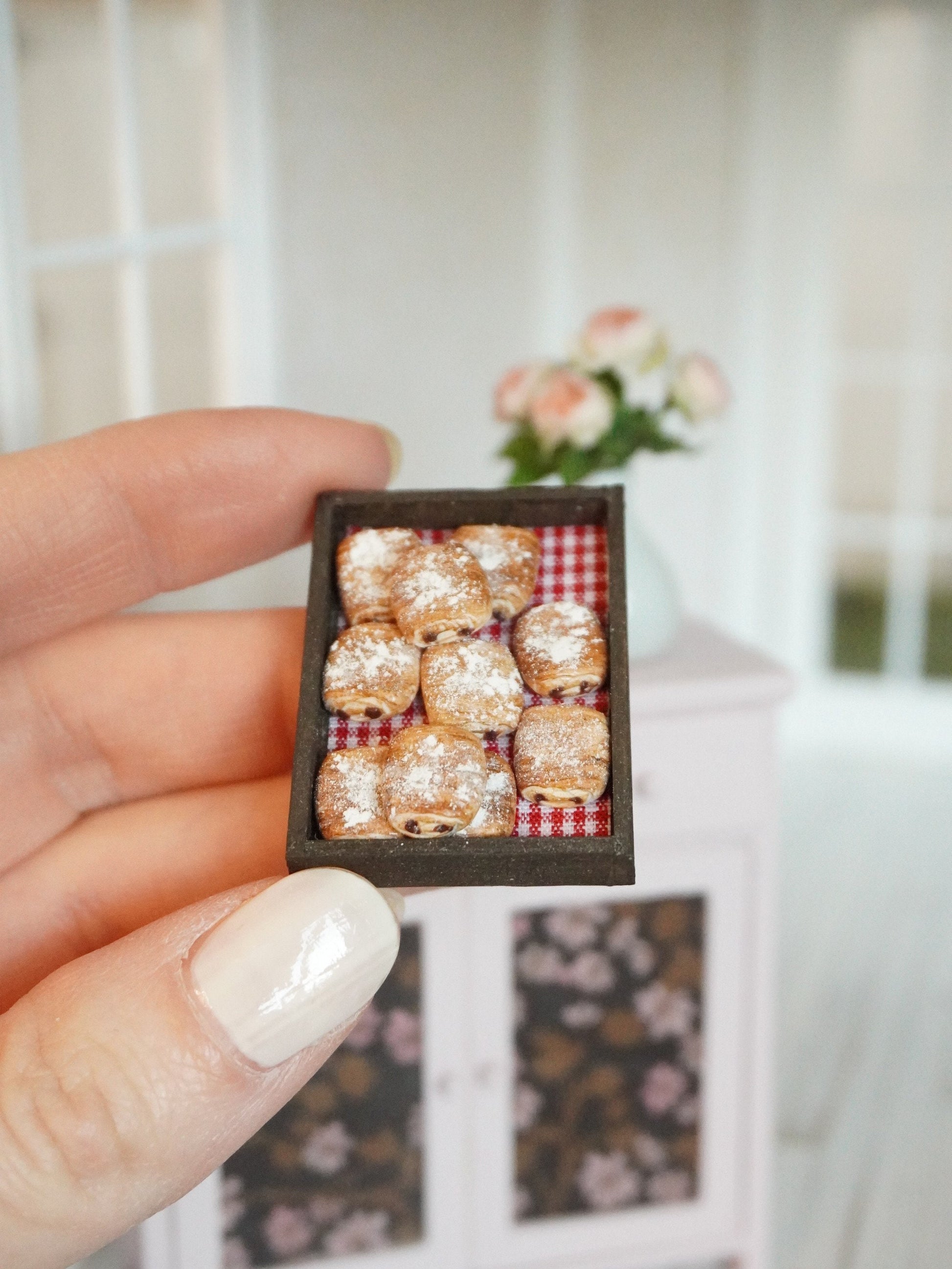 Miniature pain au chocolat handmade in 1:12 scale.