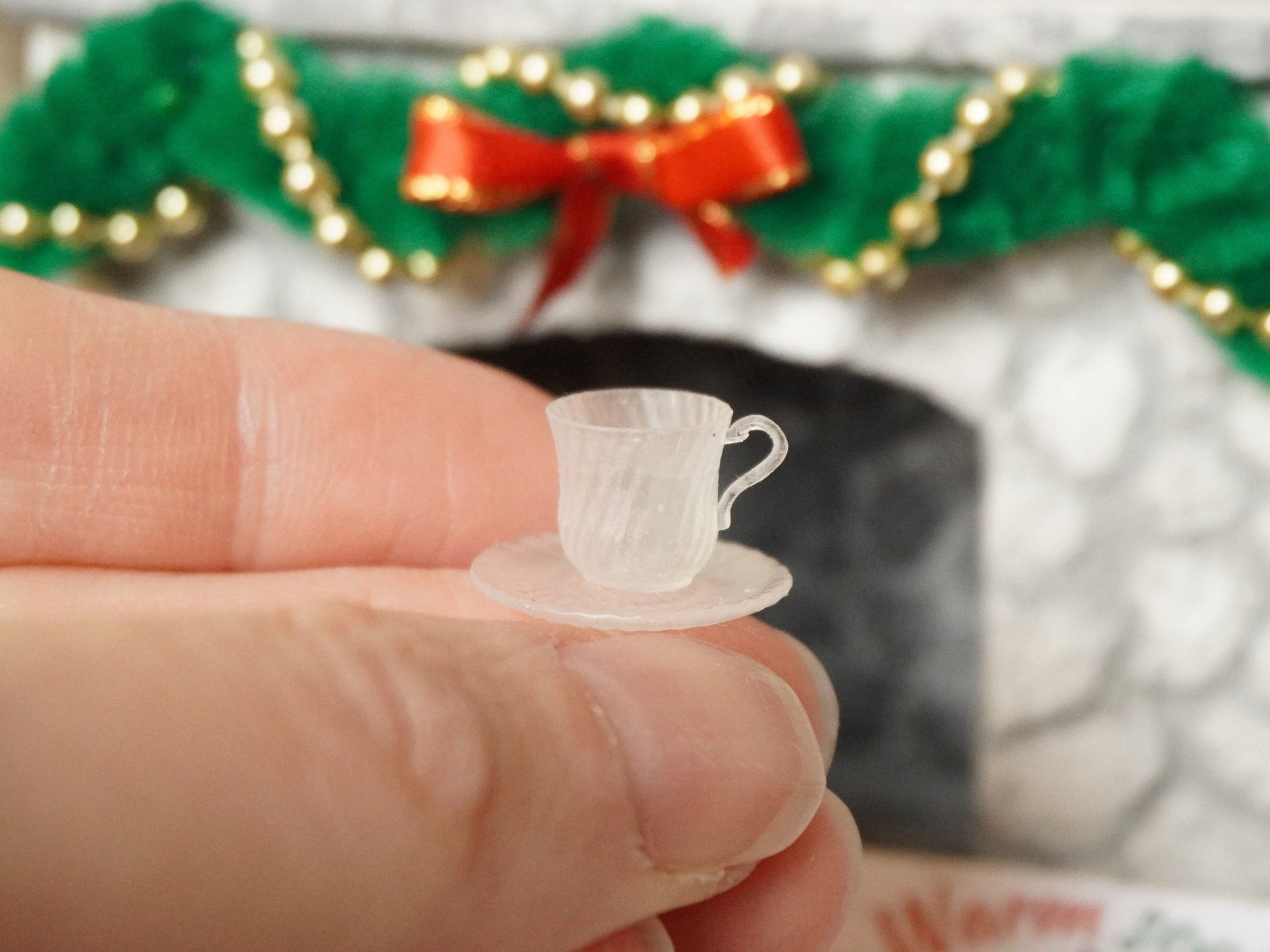 1:12 Scale Teacup and Saucer Transparent Crystal Imitation | Dollhouse Miniature Kitchenware
