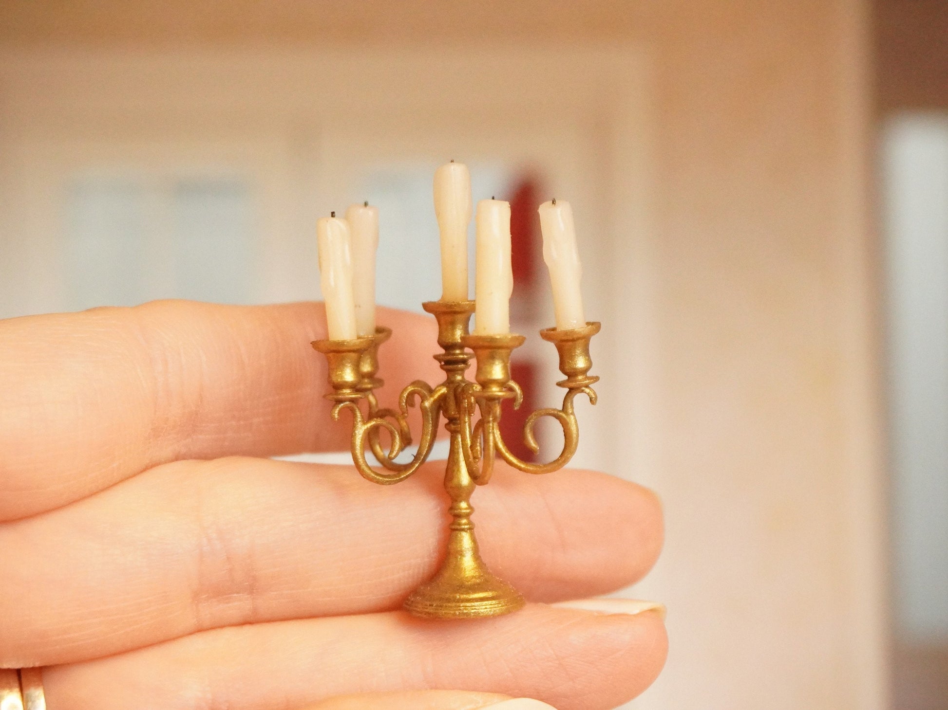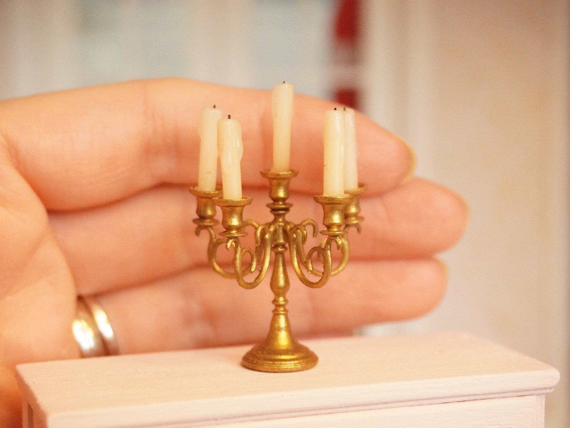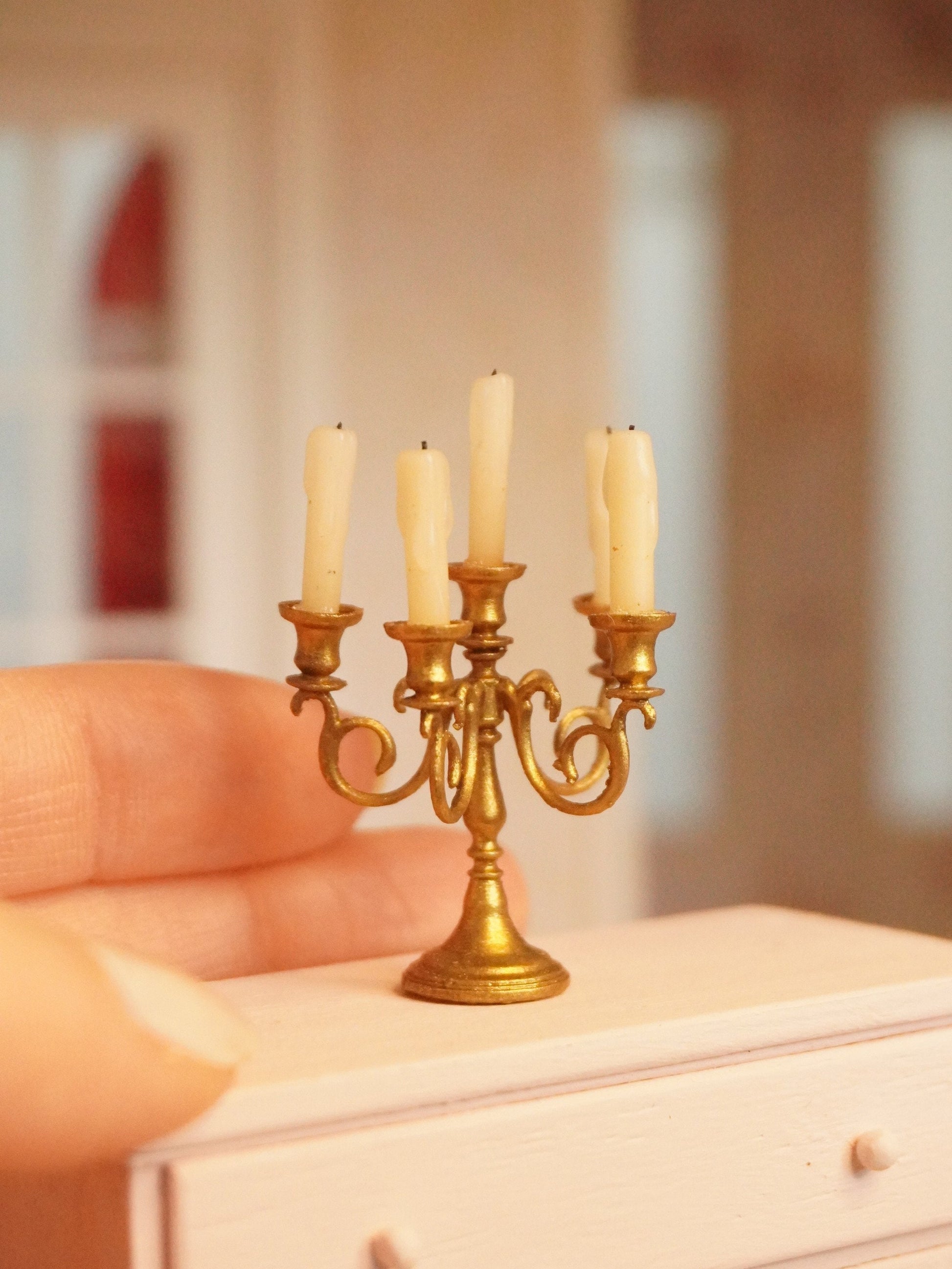 Miniature Candleholder for 5 Candles | 1:12 Scale Dollhouse Candelabra | Antique Miniatures