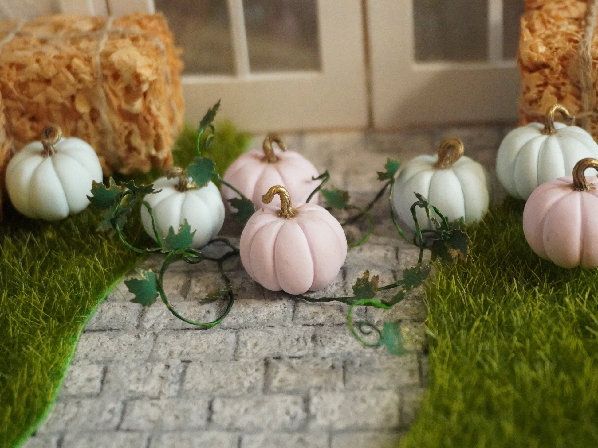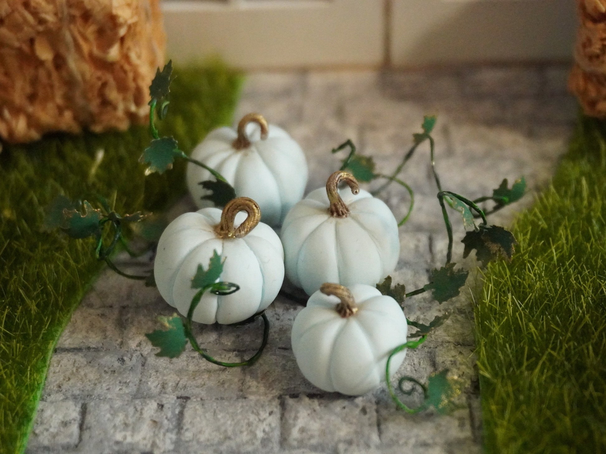 Miniature Fairy Tale Pumpkins with Vines | 1:12 Scale Dollhouse Halloween Decor