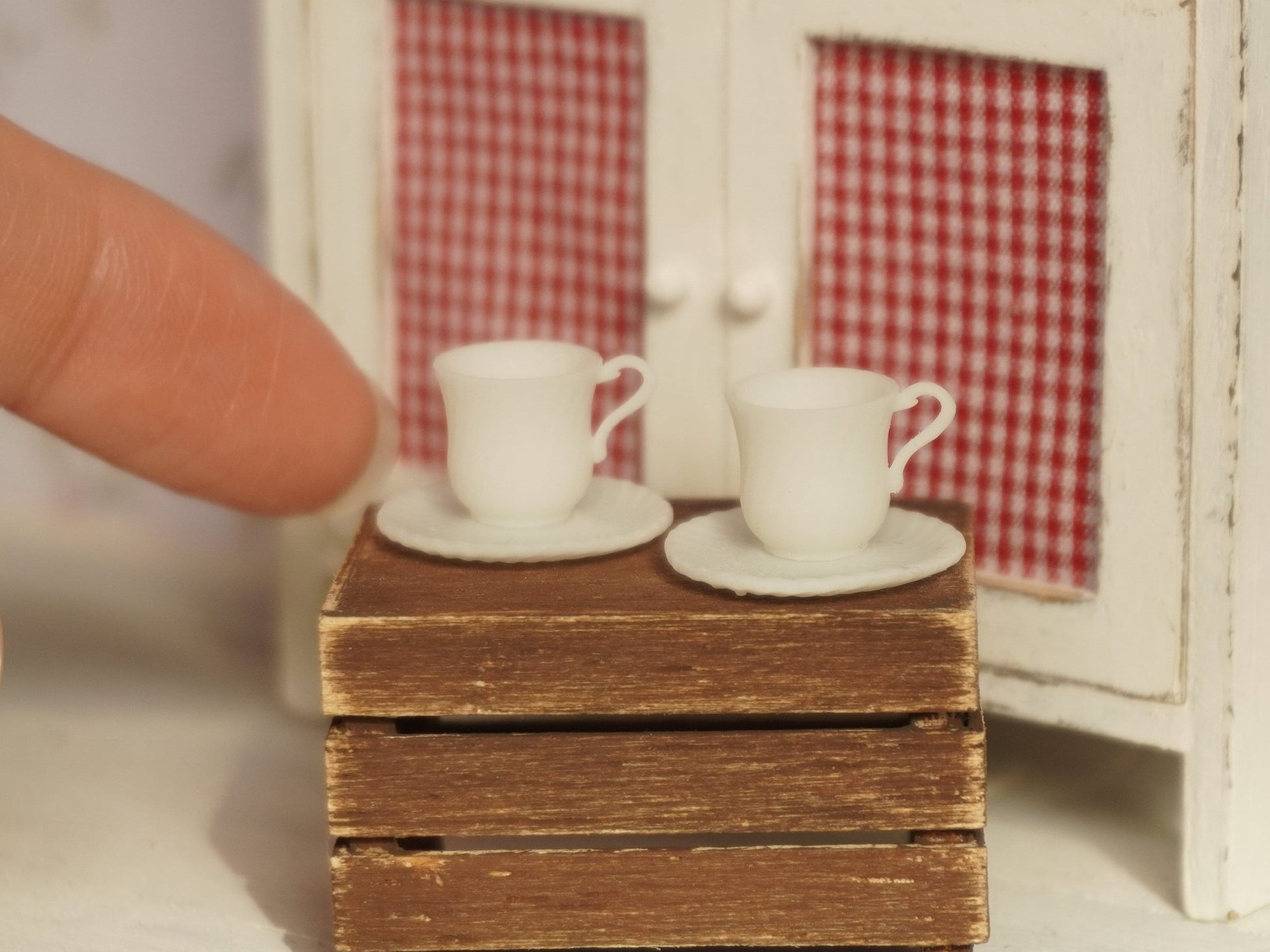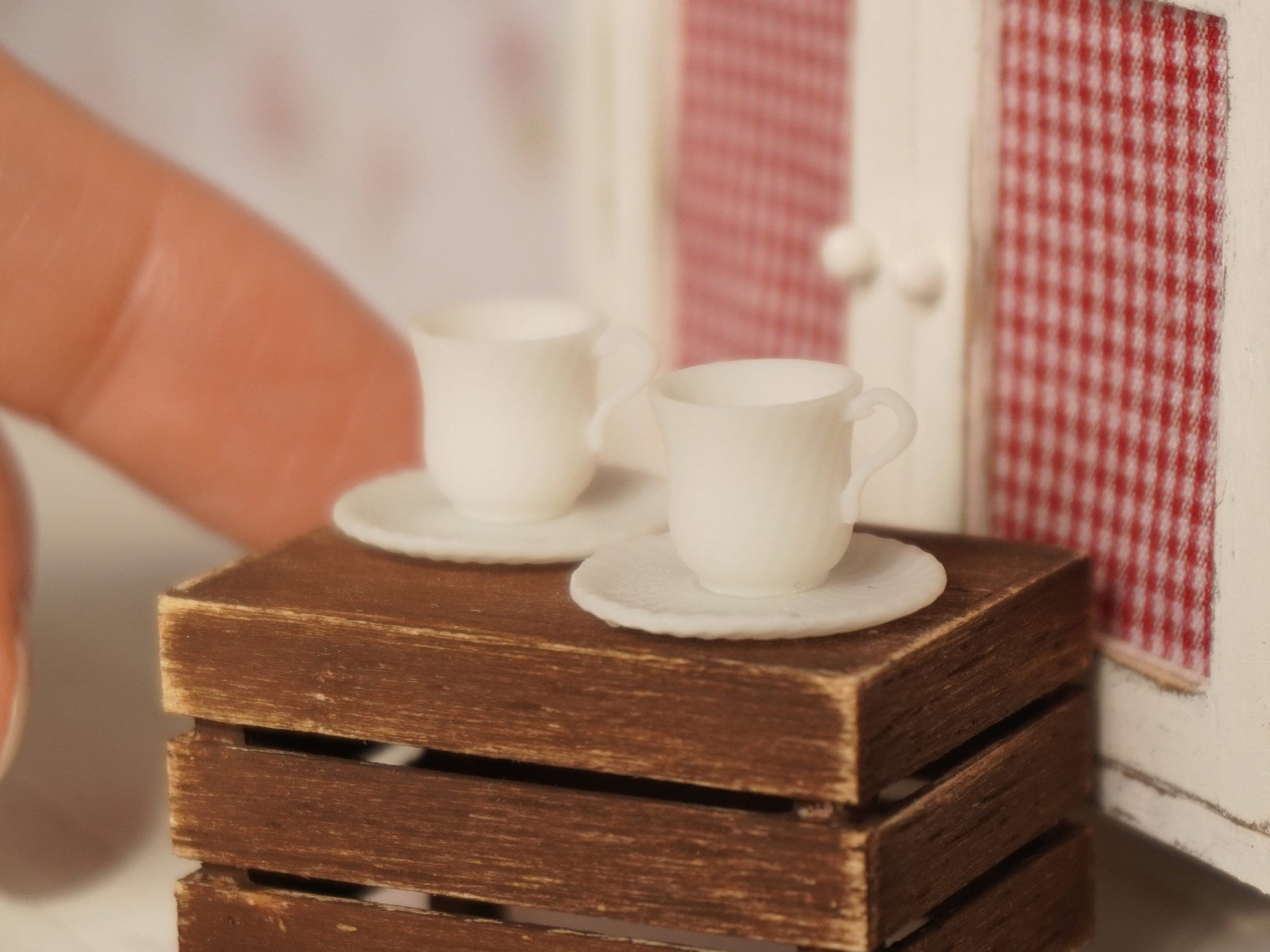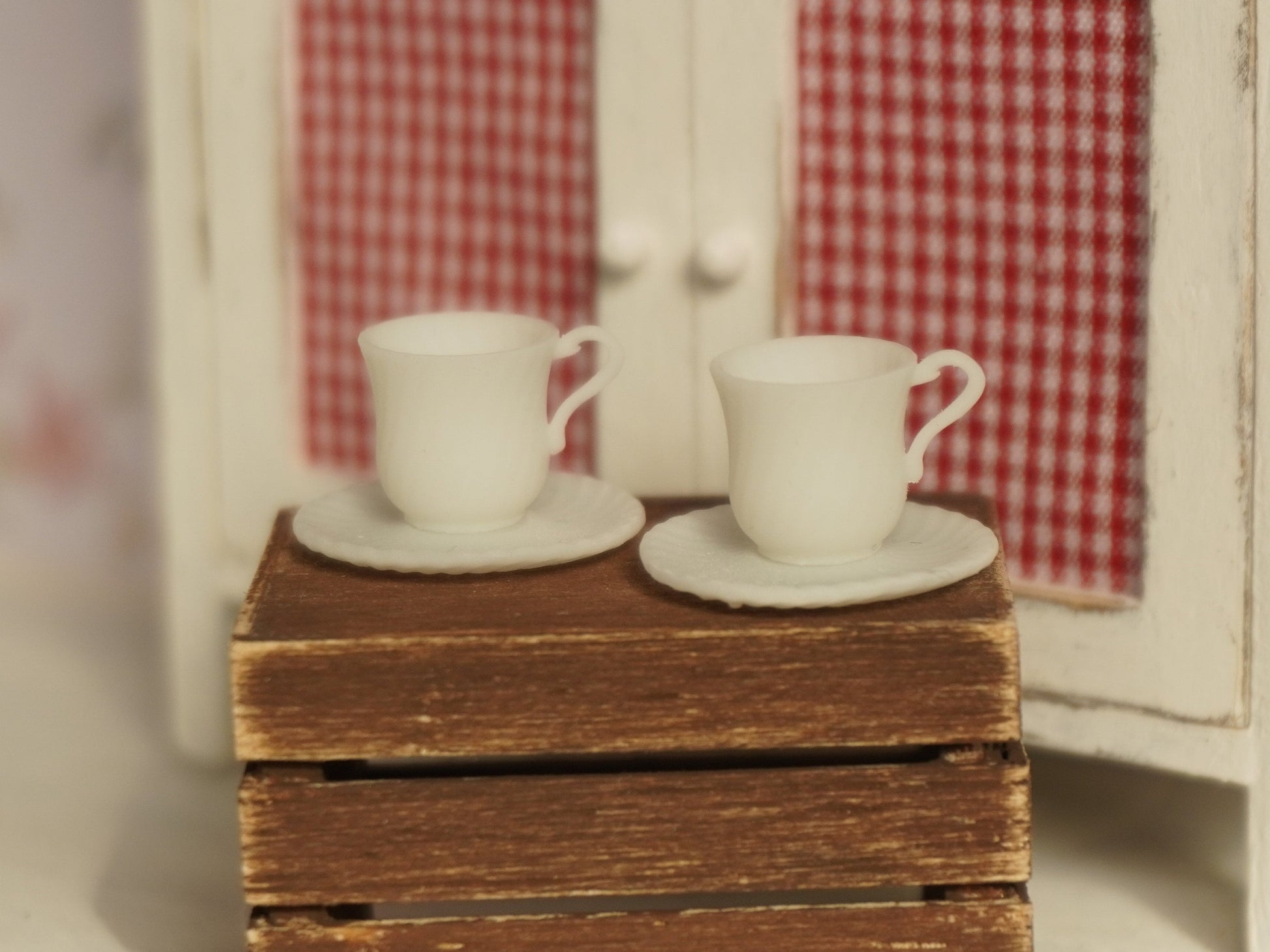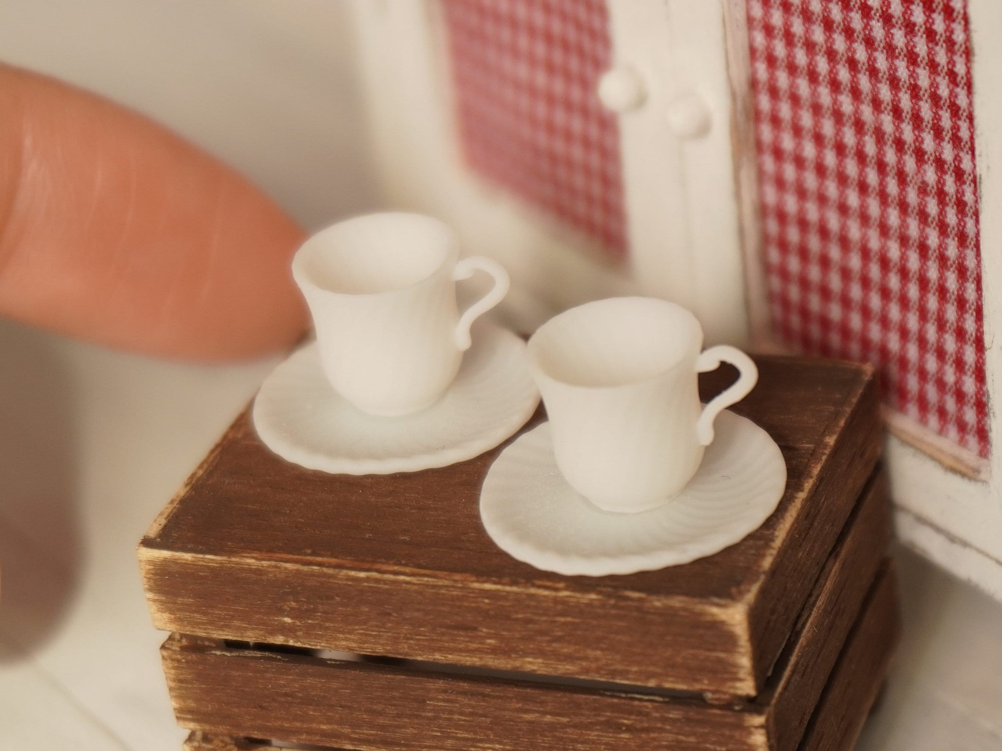 Set of 2 Teacups and Saucers 1:12 Scale | Dollhouse Miniature Kitchenware